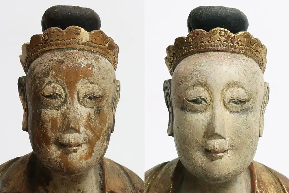 Der zu restaurierende Buddha Amitabha stammt aus China und wurde vermutlich in der Ming-Zeit 16./17. Jh. hergestellt.