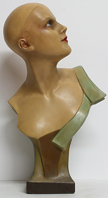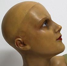 Bei der Gipsbüste handelt es sich um eine Schaufenster-Büste für Perücken der Ortner GmbH aus Fürth um 1950. Ziel der durchgeführten Restaurierung, war die vollständige Wiederherstellung der Gipsbüste. Die Gipsbüste hat eine Höhe von 60 cm und misst einen Kopfumfang von 35 cm. Sie besteht aus Alabastergips und ist als Hohlform in drei Gips-Schichten gegossen